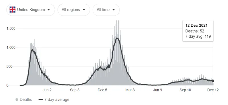 Marea Britanie are o medie săptămânală de 119 decese de COVID. (comparabil cu România)