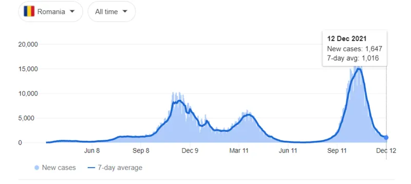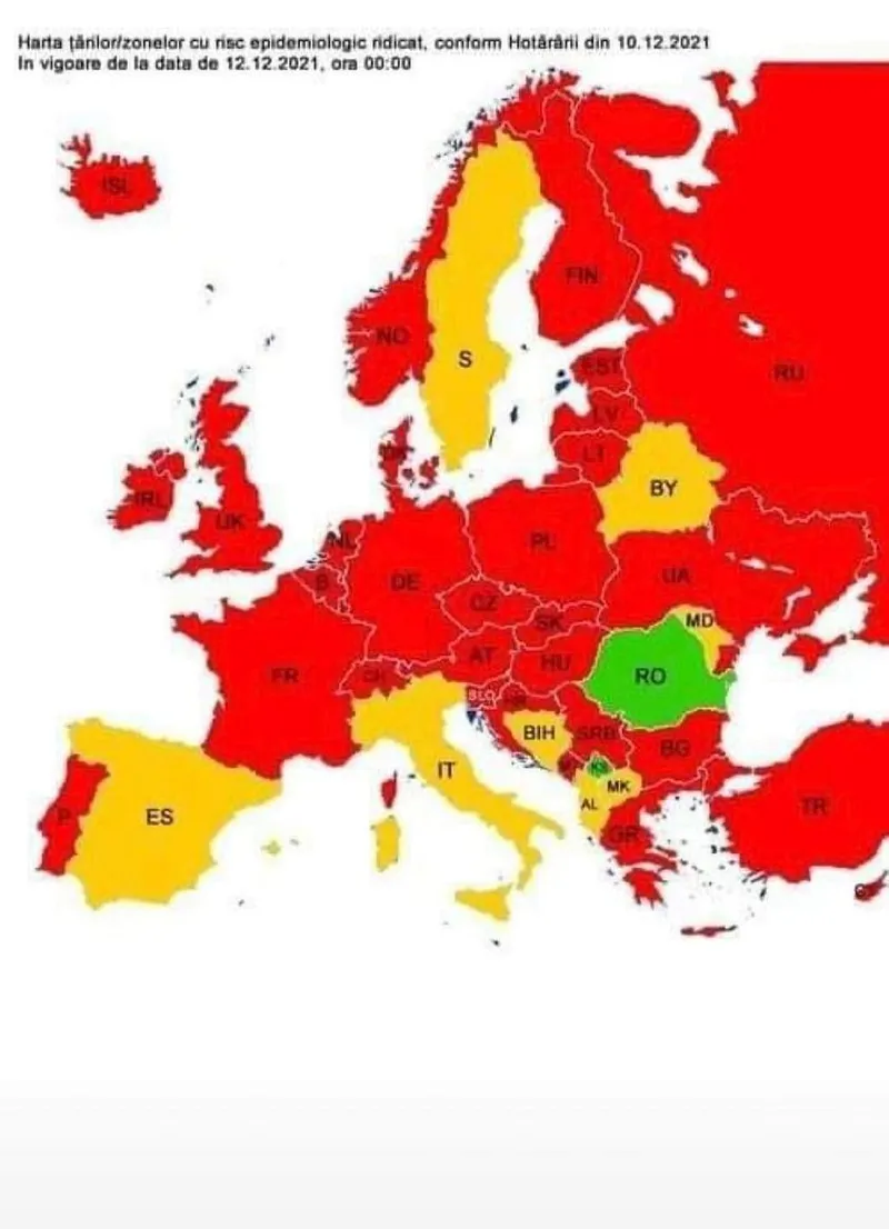 România se află în zona verde doar pentru că este mai „înapoiată” epidemiologic. România abia a ieșit din valul al IV-lea al pandemiei, în timp ce statele Europei urcă vertiginos pe valul al cincilea. Avantajul Europei îl constituie faptul că ține valul al V-lea al pandemiei (care va veni în ianuarie în România) sub control. Pentru că au vaccinat dublu față de România.