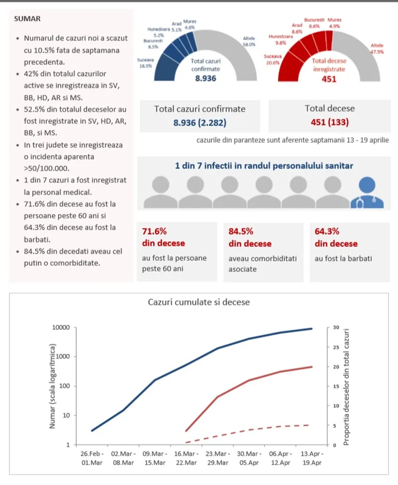 De altfel, o cercetare a Institutului de Sănătate Publică, care analizează datele disponibile până în 19 aprilie, arată că unul din șapte cazuri de coronavirus a fost înregistrat la personalul medical.