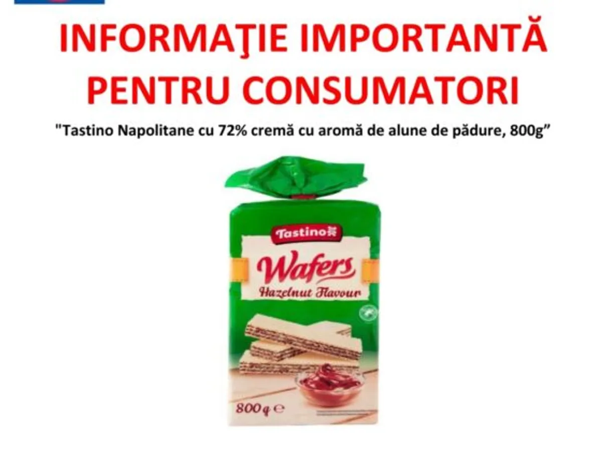 Potrivit sursei citate, această rechemare vizează exclusiv produsul "Tastino Napolitane cu 72% cremă cu aromă de alune de pădure, 800g".