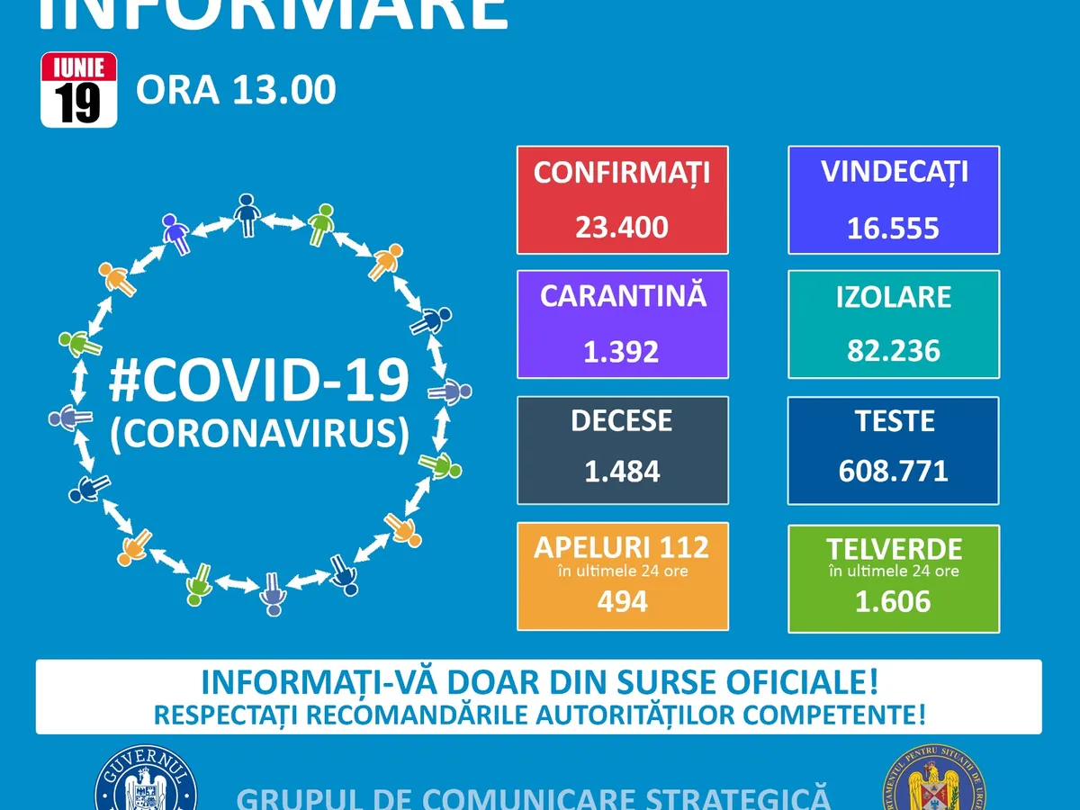 Până la această dată, la nivel național, au fost prelucrate 608.771 de teste pentru depistarea unor persoane infectate, anunță Grupul de Comunicare Strategică.