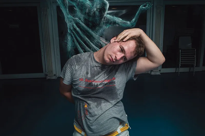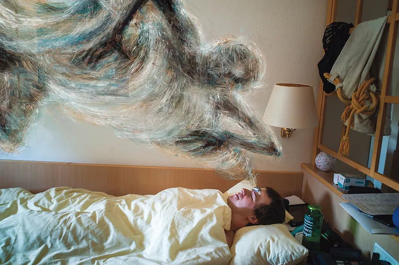 ➔ Concept Fotograful de documentar și realizatorul de film Mugur Vărzariu a transpus povestea migrenei lui Michael într-un concept vizual unic. În imaginile realizate timp de mai multe săptămâni la „Migräne-Klinik“ din Königstein, durerea este întruchipată fizic, așa cum a trăit-o tânărul german. Plecând de la propria experiență cu durerea, Mugur a dezvoltat conceptul creativ pe care, mai apoi, l-a completat cu măiestrie prietenul său, artistul ilustrator Sorin Sorășan.