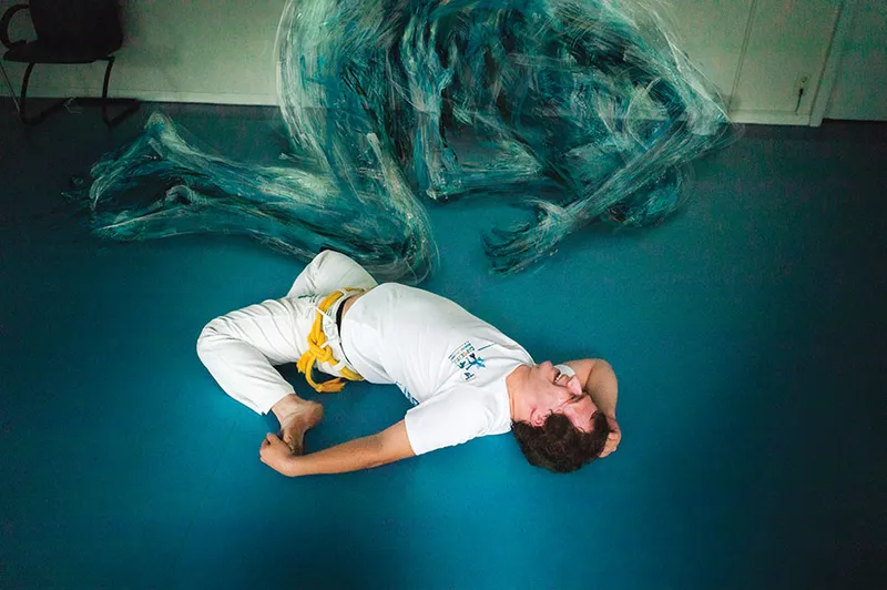 Exercițiile de stretching din timpul antrenamentului de Capoeira îl ajută să se smulgă din strânsoarea unui adversar mereu prezent