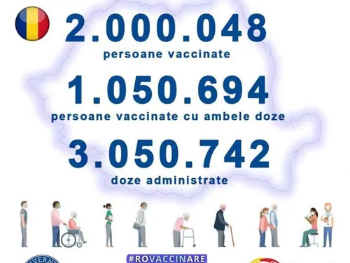 "În această dimineaţă, la ora 10,00, am depăşit pragul de 2.000.000 de persoane vaccinate împotriva COVID-19. Din 27 decembrie 2020 şi până astăzi s-au administrat 3.050.742 de doze", se precizează pe pagina de Facebook a platformei.
