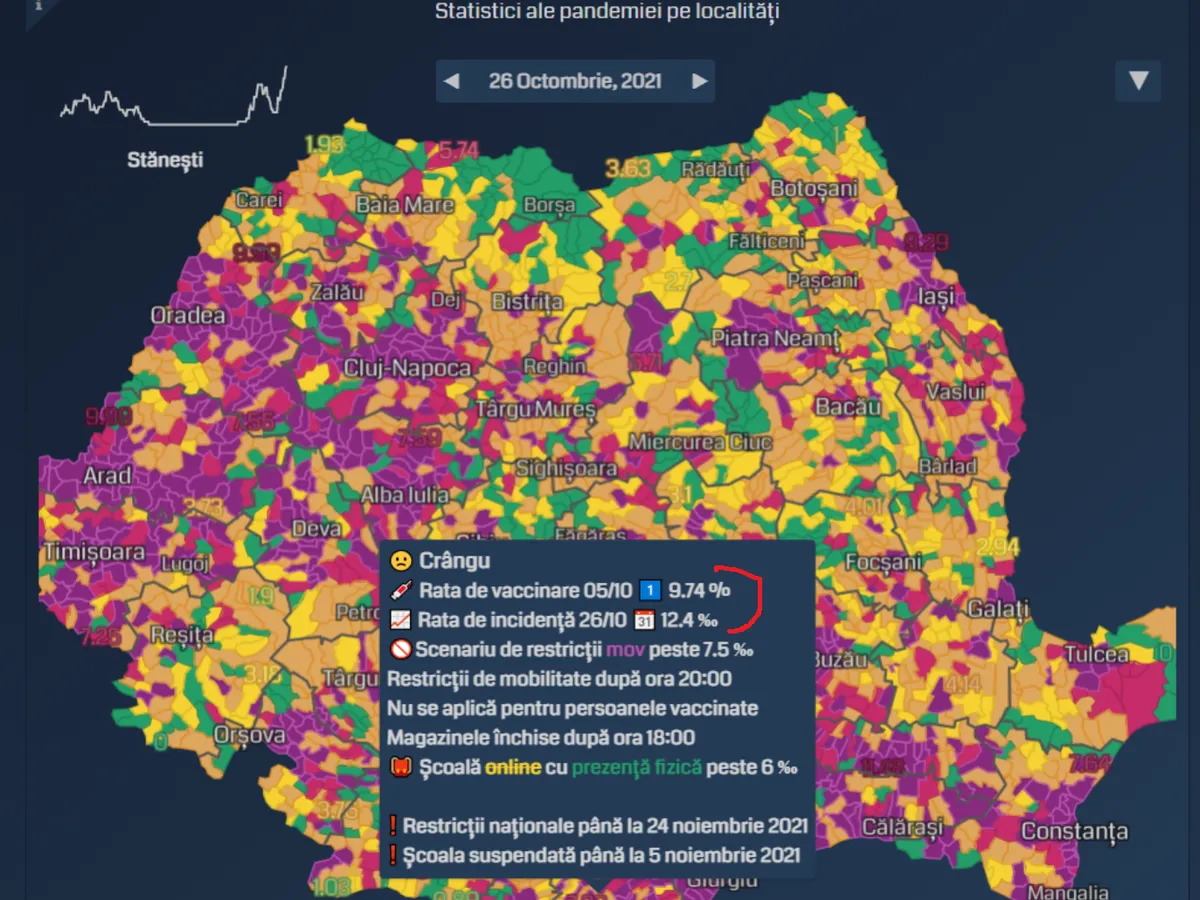 Crângu (Teleroman): rata de vaccinare – 9,7%, rata de infectare – 12,4%