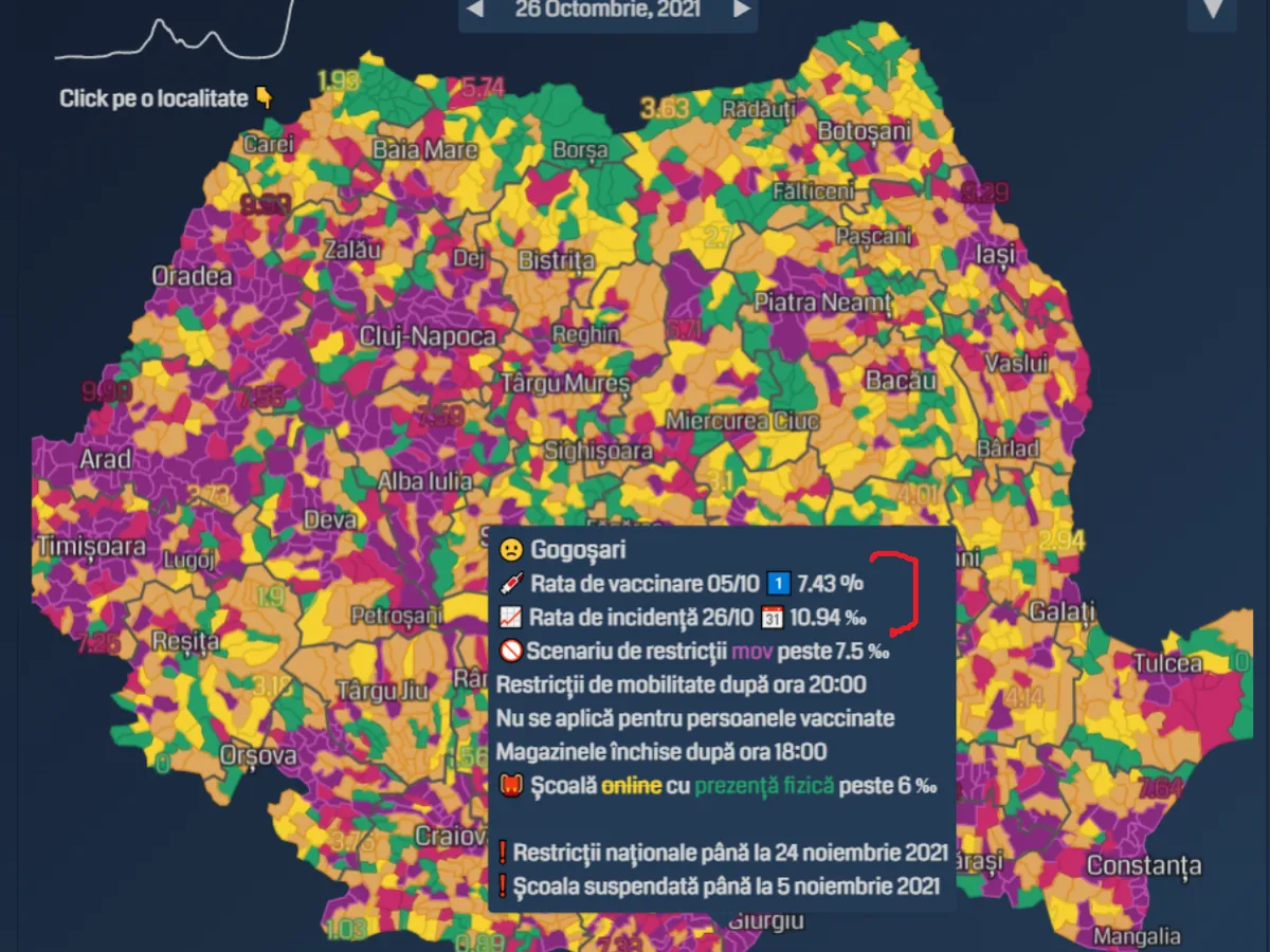 Gogoșari (Giurgiu): rata de vaccinare – 7,4%, rata de infectare – 10,9%.