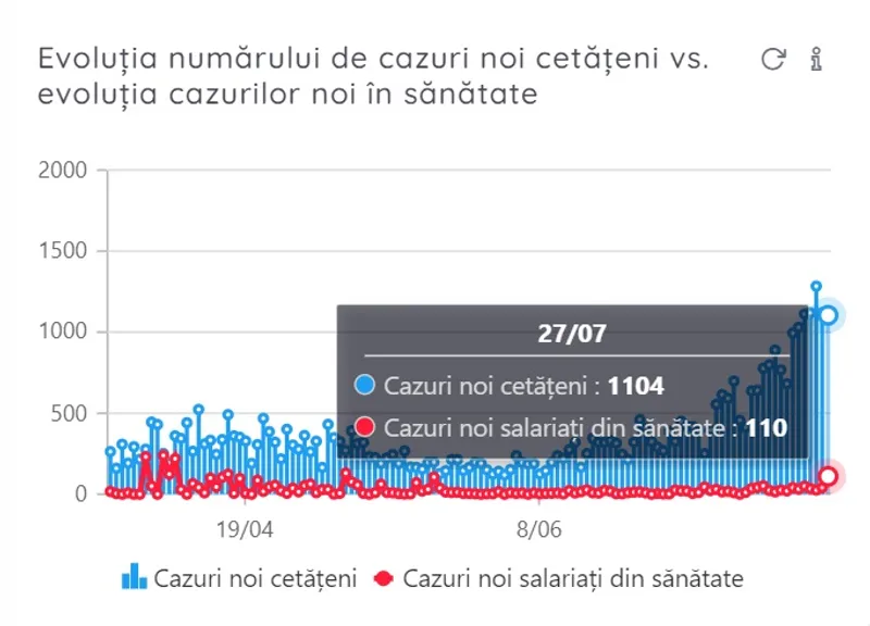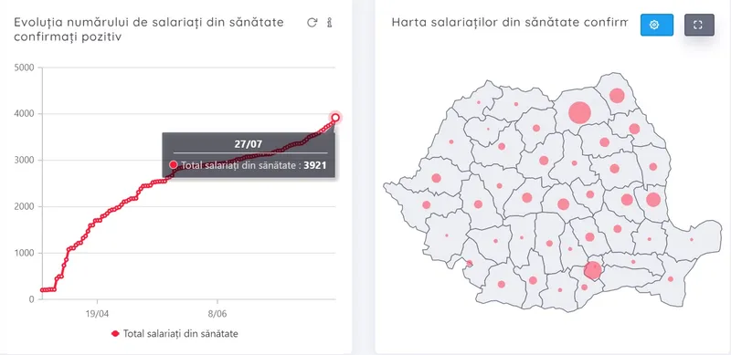 În total, sunt 3.937 de angajați din Sănătate infectați cu coronavirus, iar 26 au murit, dintre care 23 de cadre medicale (medici, asistente, infirmiere, asistenți sociali, îngrijitoare, ambulanțieri, brancardieri) și doi angajați aparținând personalului auxiliar.