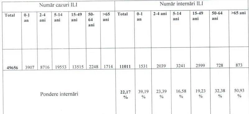În sezonul gripal 2019-2020, în România s-au înregistrat 49.656 de cazuri afecțiuni clinice compatibile cu gripa (ILI), iar rata internării a fost de 22,17 la sută, potrivit unui răspuns al Institutului Național de Sănătate Publică, la solicitarea Newsweek România (vezi tabelul de mai jos).