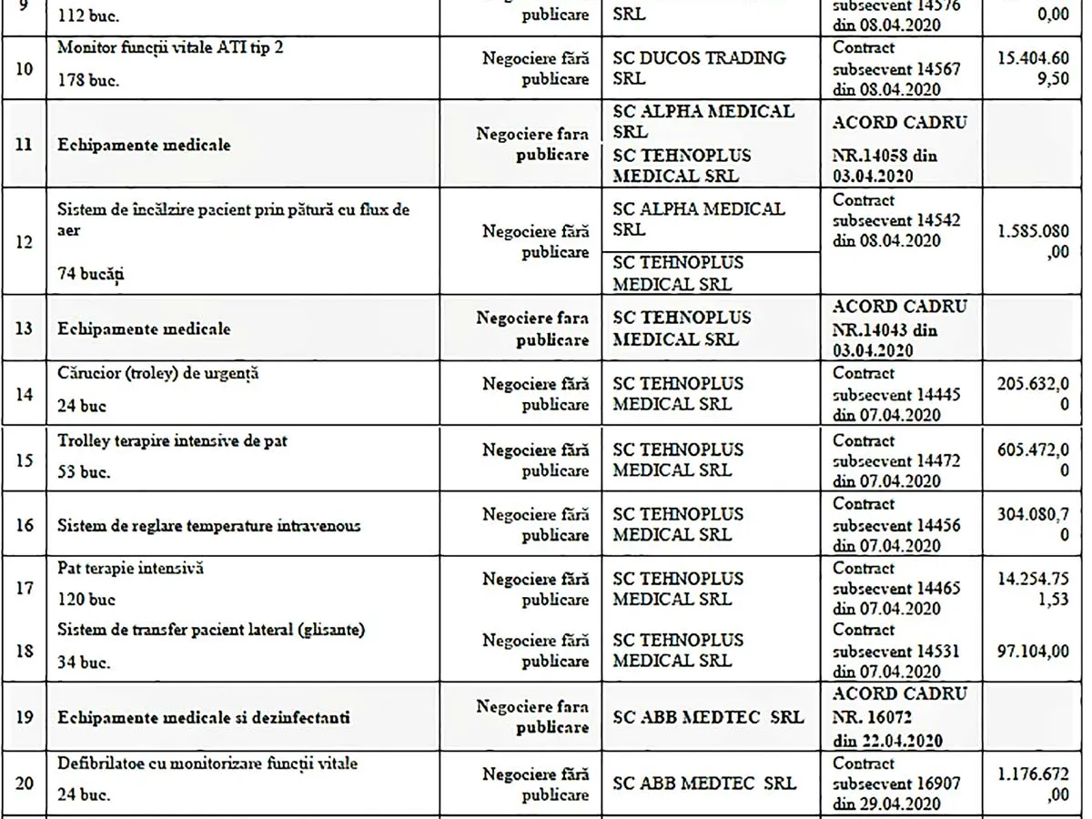 În urma verificărilor, s-a constatat că multe echipamente medicale nu ajunseseră în dotarea spitalelor, deși ele erau plătite, la data efectuării controlului, adică 30 iunie 2020. O parte dintre aceste echipamente nu au ajuns nici până astăzi la spitalele CFR, deși vorbim despre achiziții făcute în starea de urgență din 2020.