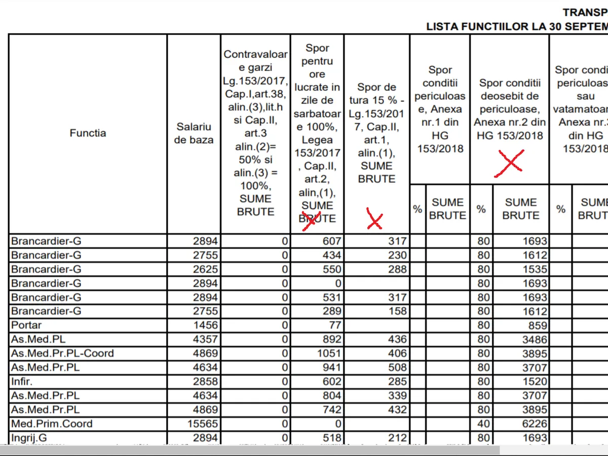 Brancardierii câștigă între 2.700 și 2.900, dar încasează spor pentru zile lucrate de sărbătoare (600 lei), spor tură (317 lei) și spor condiții vătămătoare (1.693 lei).