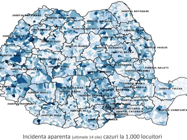 Conform acestei statistici, pe primul loc la creșterea numărului de cazuri în săptămâna 7-13 septembrie este Suceava, județul în care a fost primul focar scăpat de sub control, în luna martie.