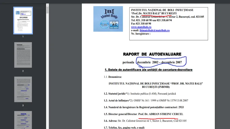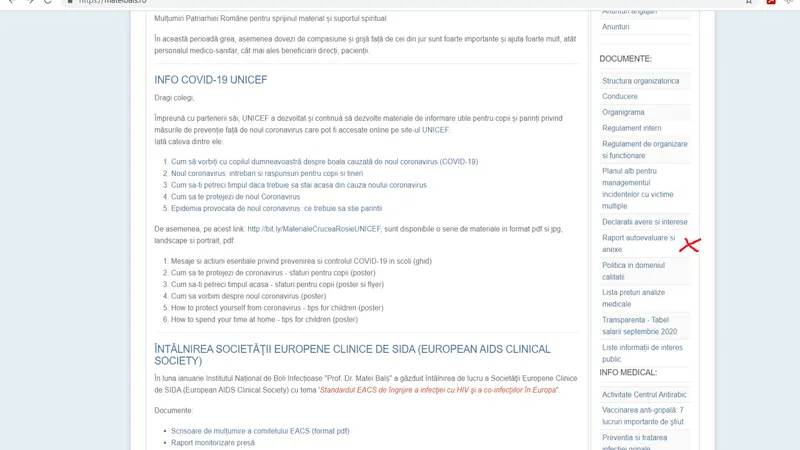 Cât de conștient era managementului Spitalului Matei Balș (asigurat de Streinu-Cercel până anul trecut) de modul în care functiona spitalul și de neajunsurile existente. Pe pagina de Internet a instituției la capitolul „Raport autoevaluare și anexe” există un singur document.
