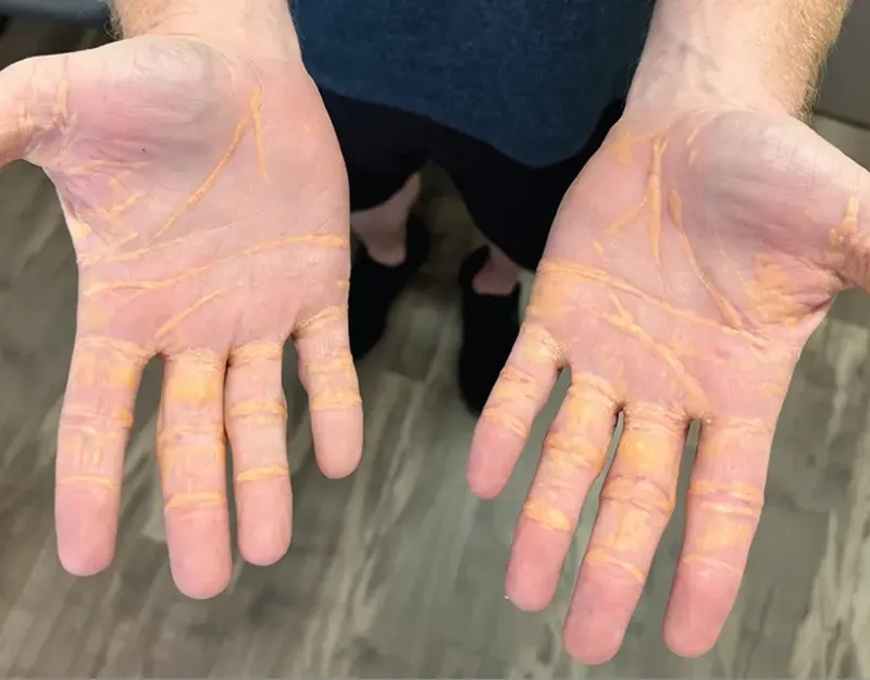 Un bărbat din Florida, în vârstă de aproximativ 40 de ani, care urma o dietă bazată pe carne, grăsimi și lactate, a ajuns la spital cu o supurație gălbuie pe palme, coate și tălpi.
