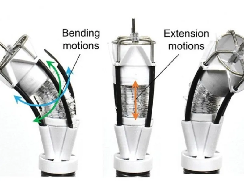 Sistemul hidraulic permite brațului să se îndoaie și să se răsucească, în timp ce controlerele reglează rigiditatea folosind tuburi elastice. Fiecare componentă este operată din exterior.
