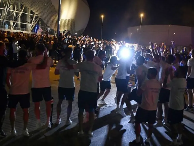 VIDEO Zeci de suporteri ai Craiovei, petrecere umăr la umăr, fără măști, după victoria cu FCSB