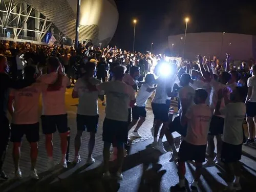 Din clipul postat se vede că jucătorii au fost separați de suporteri printr-un cordon de jandarmi.