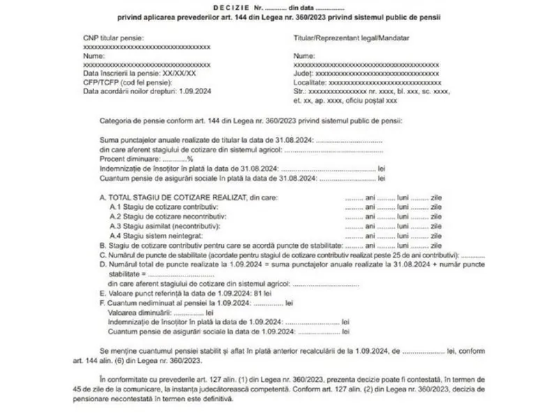 Casa de pensii a publicat cum va arăta adeverința care va fi trimisă pensionarilor în această vară cu pensia recalculată. O aveți mai jos.