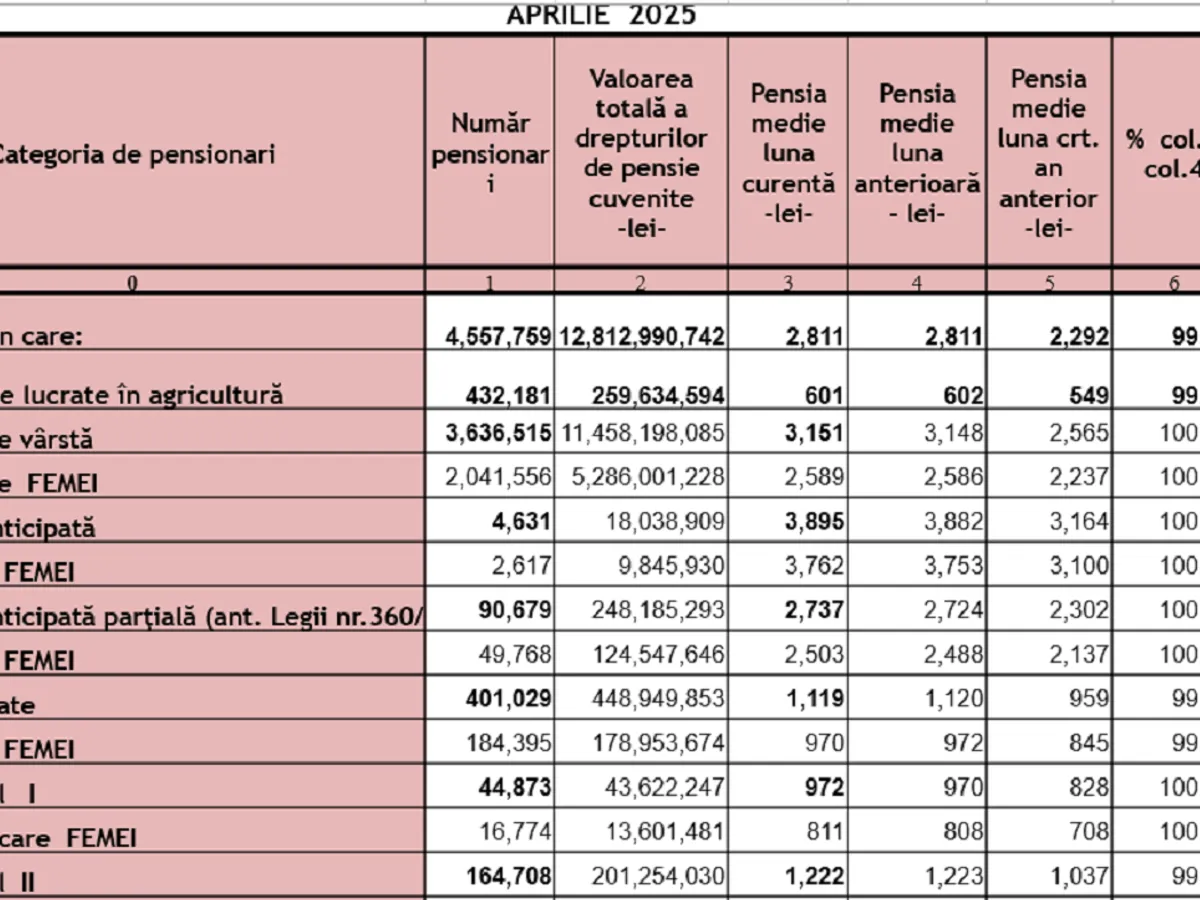 Citește și: Pensii crescute cu sume între 220 lei și 1.200 lei pentru toți pensionarii. Când se dau banii?