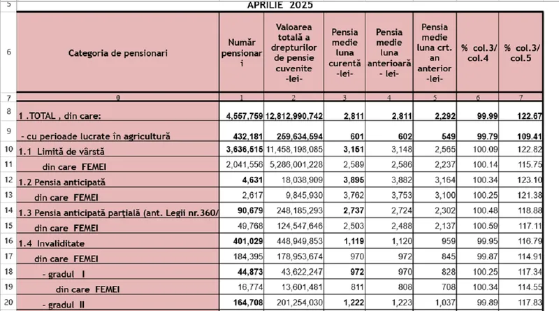 Pensie de invaliditate iau 401.000 de oameni cu o pensie medie de 1.119 de lei. Pensie anticipată parțial primesc 90.600 de pensiei, pensia medie fiind 2.737 de lei.