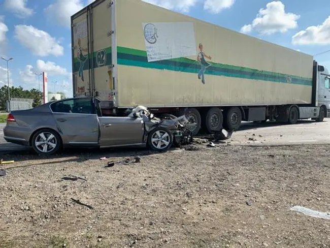 Accident în Buzău -Un gălățean a murit după ce a intrat cu mașina sub un TIR. Soția sa, grav rănită