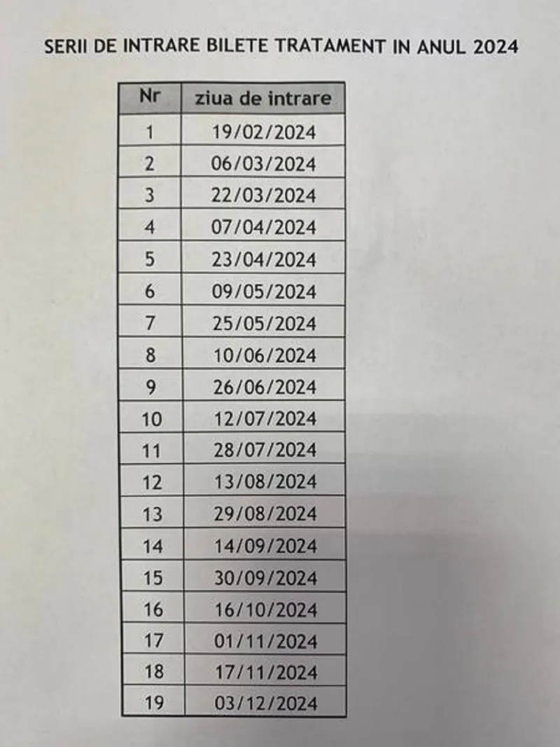 Mai jos aveți perioadele în care puteți merge anul acesta la tratament: