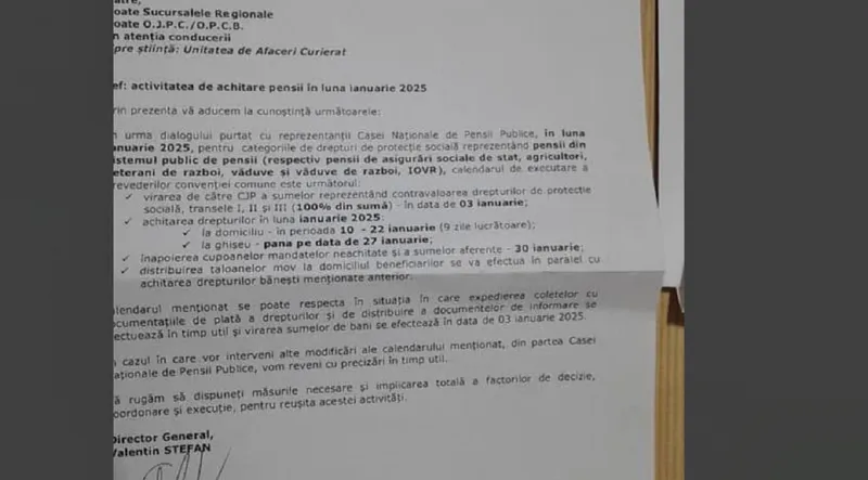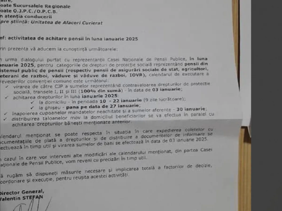 Citește și: DOCUMENT Unii pensionari vor primi pensia abia pe 22 ianuarie. Întârzieri și de 12 zile. De ce?
