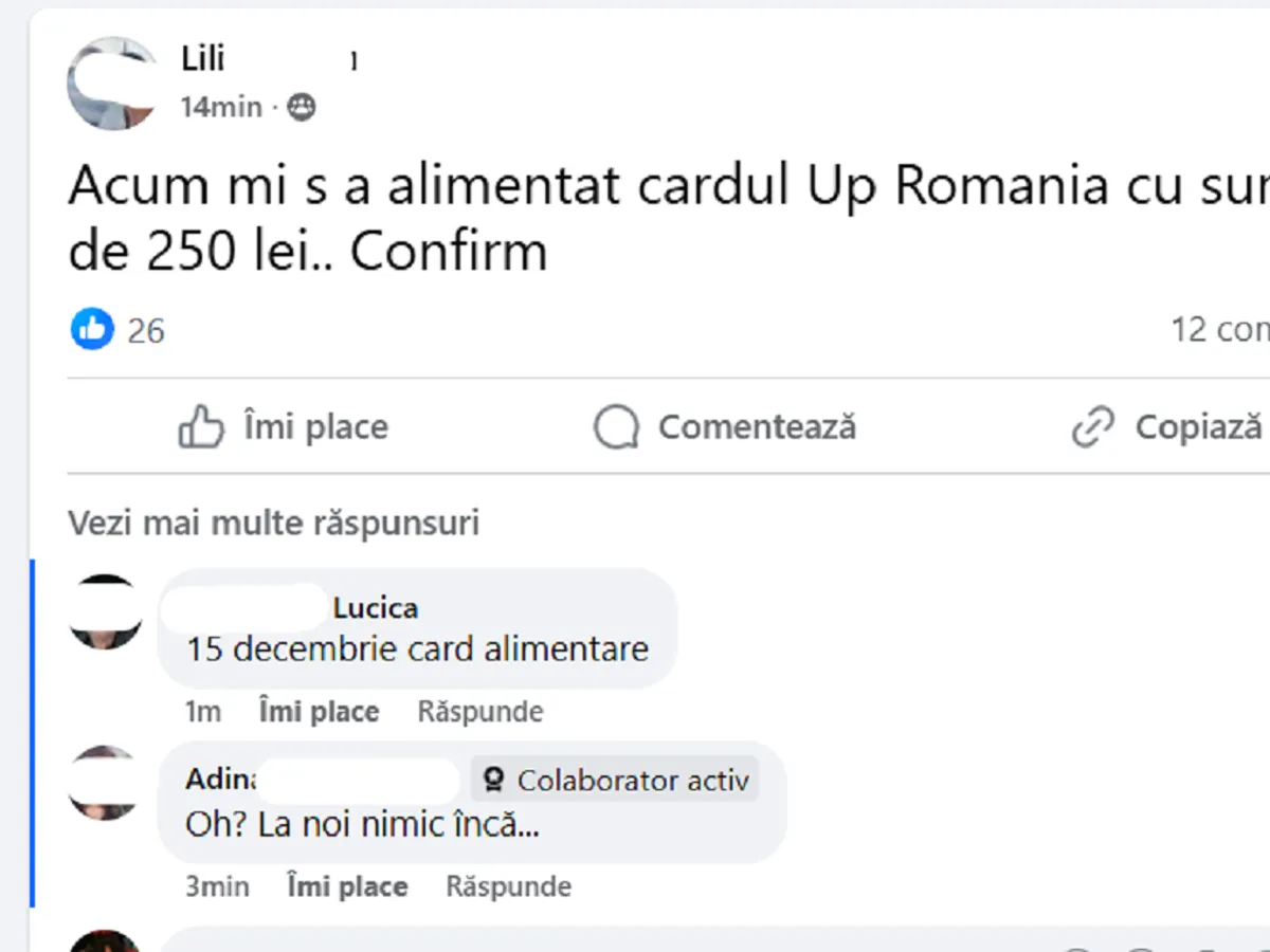 UPDATE. O confirmare din București de încărcare a cardului de alimente o aveți mai jos.