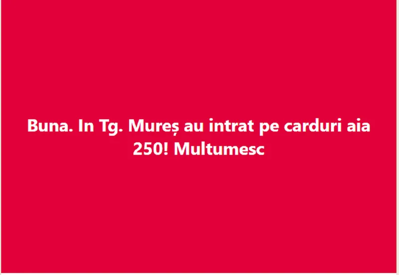 Așa cum se vede mai jos, au intrat banii la Târgu Mureș. Altcineva din București anunță că „Bună ziua în București au intrat cei 250 azi (15 februarie) pe la ora 12:30”.