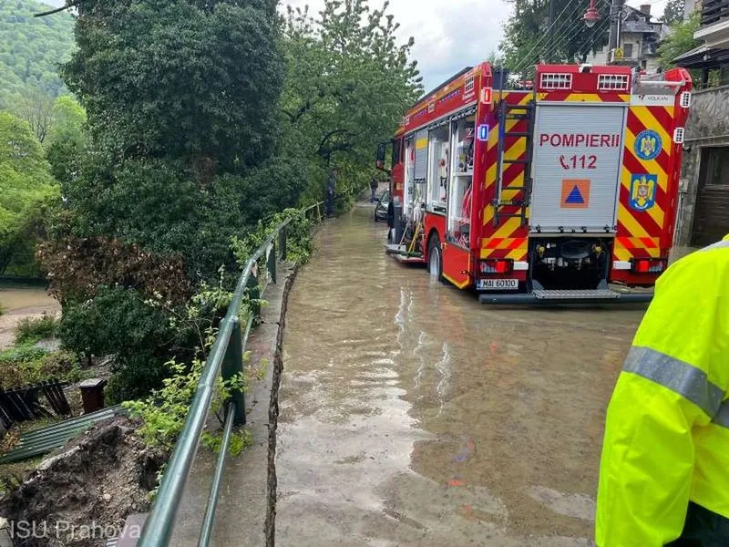 De asemenea, pompierii au intervenit pentru evacuarea apei şi de pe o porţiune a străzii Mihail Kogălniceanu, din oraşul Sinaia.