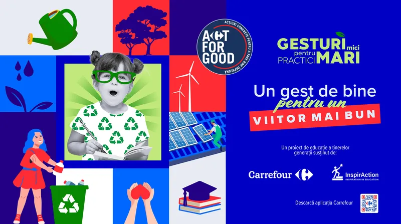 Acest lucru își propune Carrefour România, în colaborare cu Asociația InspirAction, prin "Gesturi mici pentru practici mari" – un proiect de educație sustenabilă dedicat copiilor din grădinițele și școlile din întreaga țară.