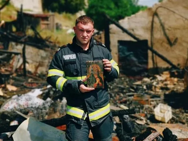 Casă distrusă complet de incendiu. Icoana Maicii Domnului, găsită intactă. O icoană a Maicii Domnului a fost găsită aproape intactă de către pompierii care au intervenit să stingă un incendiu.