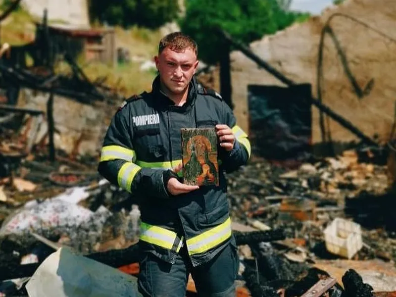 Incendiul a avut loc vineri, în localitatea Lechinţa din judeţul Bistriţa-Năsăud. O casă a ars, iar flacăra deschisă a distrus mare parte din imobil. Printre ruine, salvatorii au găsit o icoană aproape intactă.