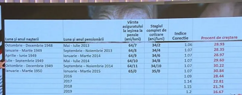 Punctul de pensie și pensia minimă vor crește cu un procent de 13,5%, crescând cu câteva sute de lei. La recalcularea pensiilor unii pensionari vor primi o altă creștere care poate ajunge și la 30%.