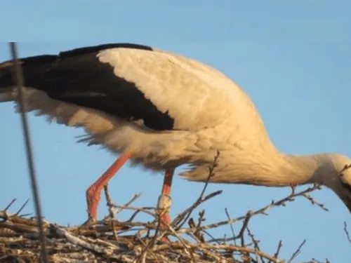 Asta ne bucură foarte mult, acestă pereche își face deja cuibul, își înfrumusețează cuibul. Ultimele berze care mai reușesc să cuibărească vin de 1 mai. Berzele nu sunt o specie la care perechea se formeză pe viață, sunt mai mult fideli cuibului decât perechi”.