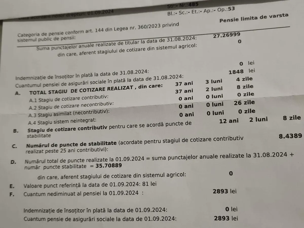 Un alt pensionar care a primit o creștere substanțială este din Satu Mare. El a muncit 44 de ani și jumătate, din care 36 de ani sunt cu perioadă contributivă, iar restul de 10 ani și 8 luni cu stagiu neasimilat.