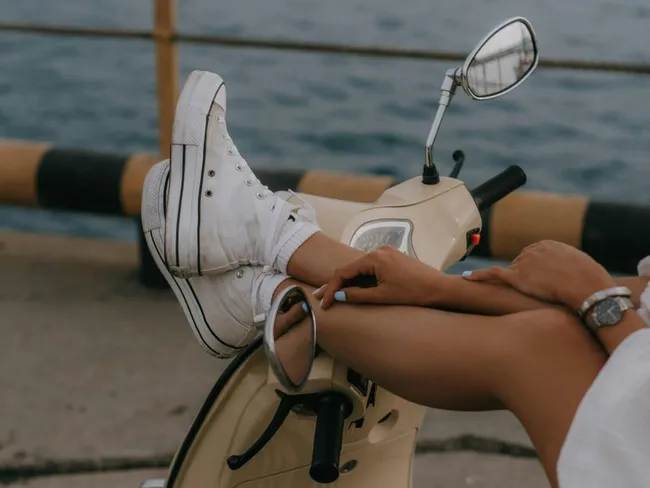Femeie pe un moped roşu - Foto: Pexels/Anastasia Shuraeva