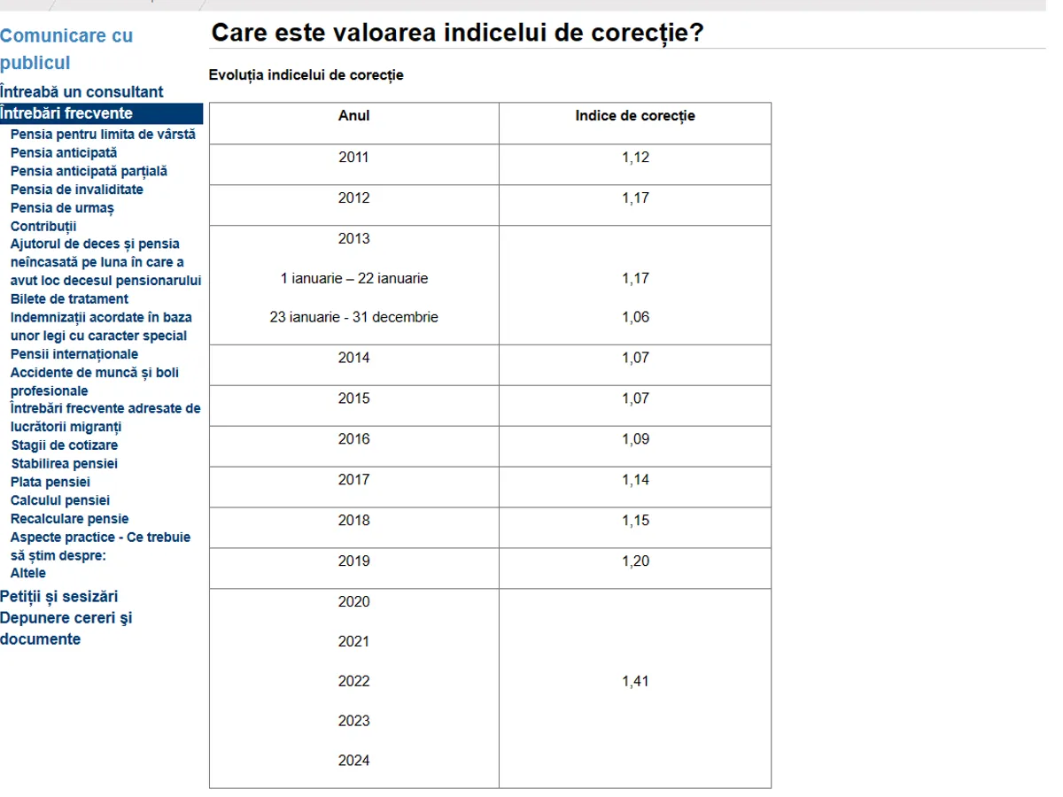 Pensionarii care primesc mai mulți bani la pensie din punctul acesta de vedere sunt născuți înainte de 2011 când nu exista indice de corecție. Cele mai mici indici de corecție au fost în anii 2014 și 2015 - 1,07, apoi 2016 când indicele a fost 1,09 și în 2011 - 1,12.