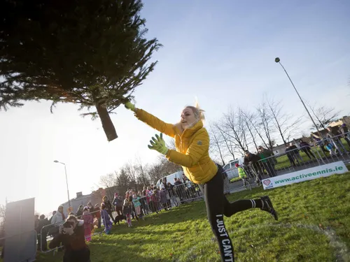 Grabska, o locuitoare al orașului Ennis, a fost unul dintre oamenii fotografiați aruncând molizi de 5 picioare, la competiția locală de aruncare a copacilor. Concurenții se întrec pentru a vedea cine poate arunca un copac cel mai departe.