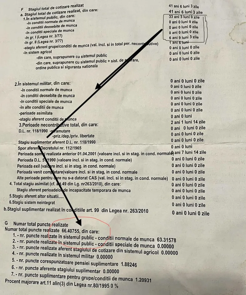 Pensionarul are 66,40755 puncte pe talonul de pensie + punctele de stabilitate 10,25 = 76,65755