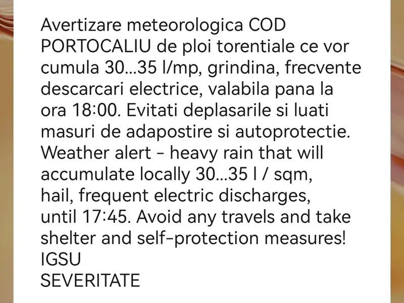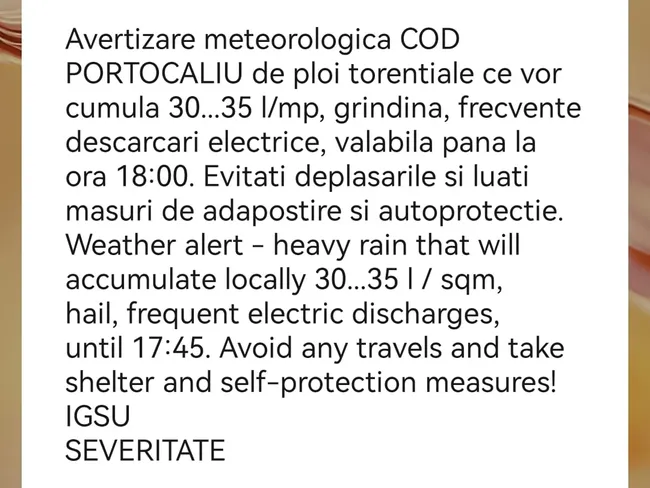 ISU Bucureşti-Ilfov a emis un mesaj de avertizare prin sistemul RO-Alert.