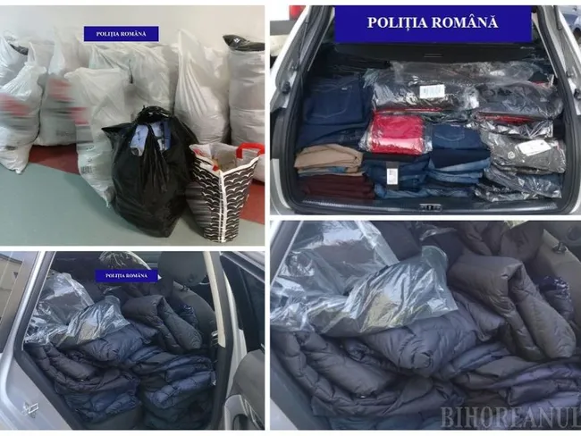 În autoturism, poliţiştii au găsit peste 250 de geci, cămăşi, bluze, blugi, paltoane şi costume, purtând însemnele unor mărci consacrate - Hermes, Tommy Hilfiger, Dama Spa, Burberry, Levi Strauss, Gant, Moncler, Polo - dar cu semne evidente că sunt contrafăcute, haine pe care soţii Eni au pretins că le-au cumpărat dintr-un centru comercial din Bucureşti şi urmau să le scoată la vânzare, conform Bihoreanul.