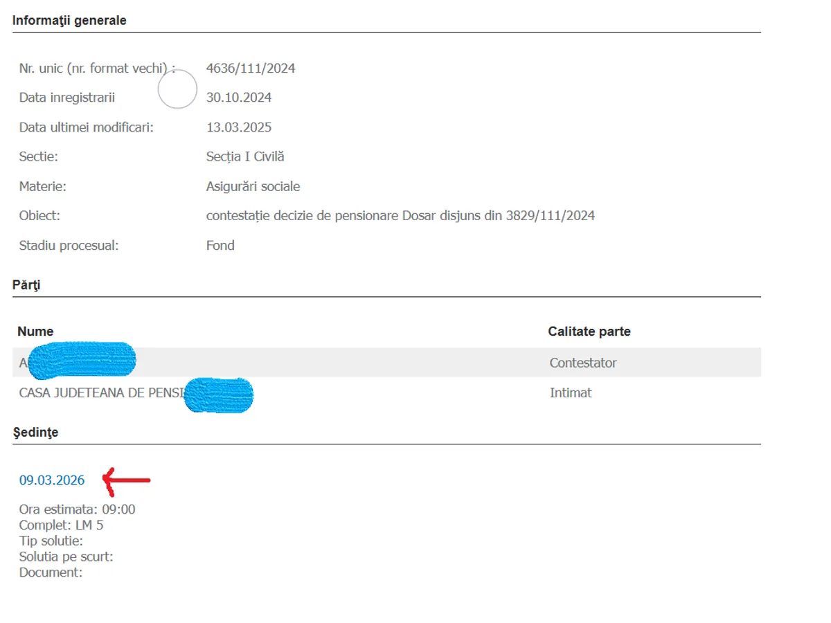 Primul termen de dezbatere a chestiunii în instață a fost stabilit pe 9 martie 2026, adică după un an. (vezi facsimil mai jos)