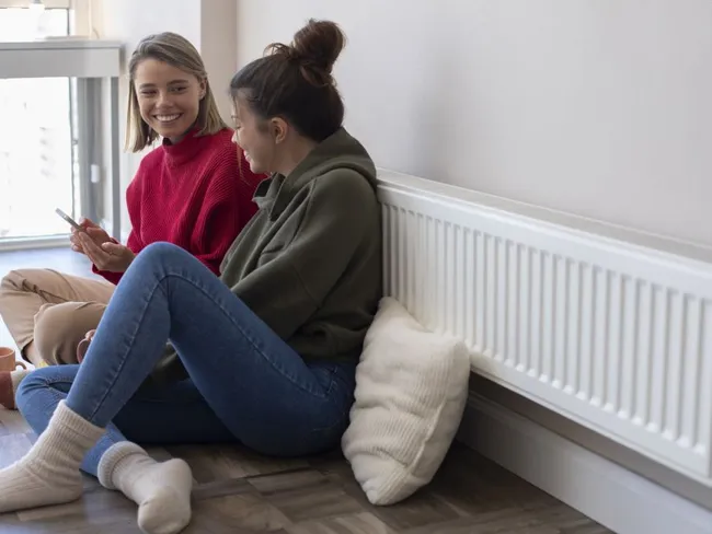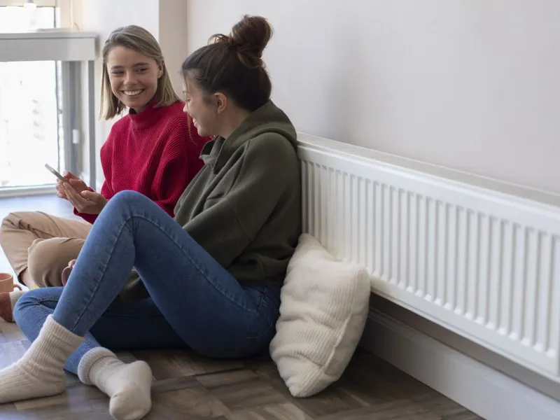 Mamă cu fiică fericite, pentru că merge caloriferul şi e cald în casă - Foto: Pexels/Снежана