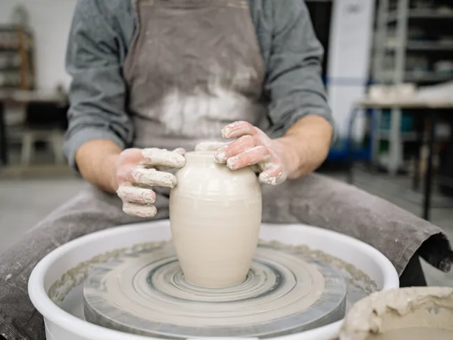 Lutul se aşază pe roată şi se modelează. Trebuie să intuieşti presiunea pe care o pui asupra lutului ca să ia forma pe care ţi-o doreşti. Prea multă presiune asupra lutului şi nu ne mai iese forma.