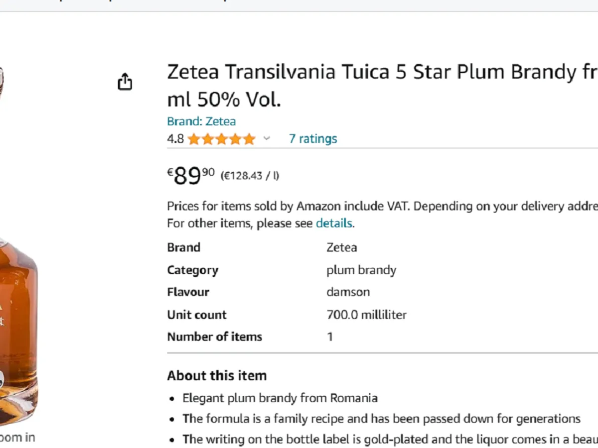 În comerț, la supermarket, țuica mai „răsărită” se dă cu 80-90 de lei. Pe amazon.com, poate cel mai mare portal unde se fac vânzări în Occident, țuica și pălinca din Ardeal se vând la prețuri exorbitante.