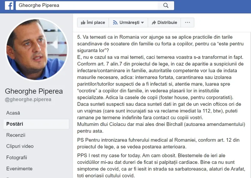 Daca sunteti suspecti sau daca sunteti dati in gat de un vecin ofticos ori de un vrajmas (care sunt incurajati sa va reclame imediat la 112, btw), puteti ramane pe termene indefinite fara contact cu copiii vostri. Multumim dlui Ciolacu dar mai ales dnei Birchall (autoarea amendamentului) pentru asta”, scrie, pe contul său de Facebok, avocatul Gheorghe Piperea, care și-a și anunțat participarea la protestele din Piața Victoriei.