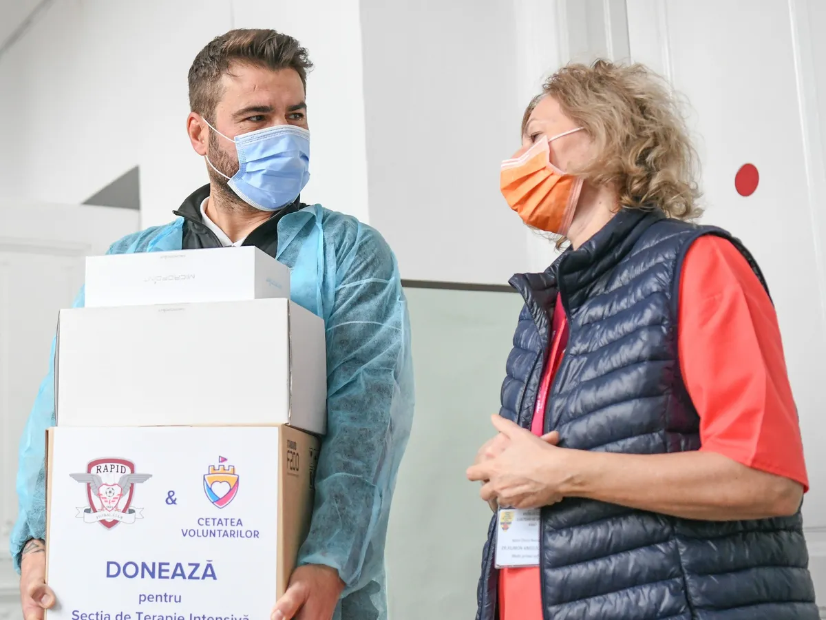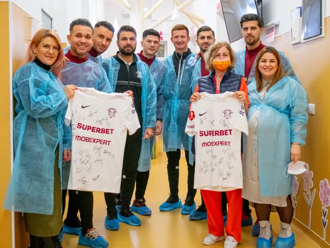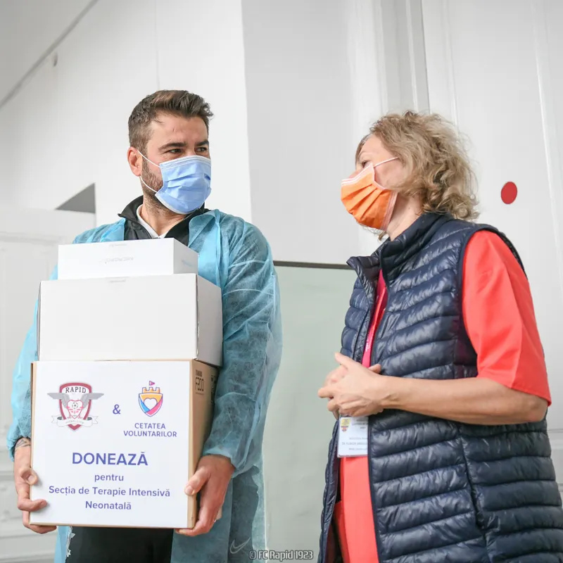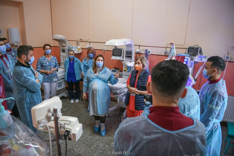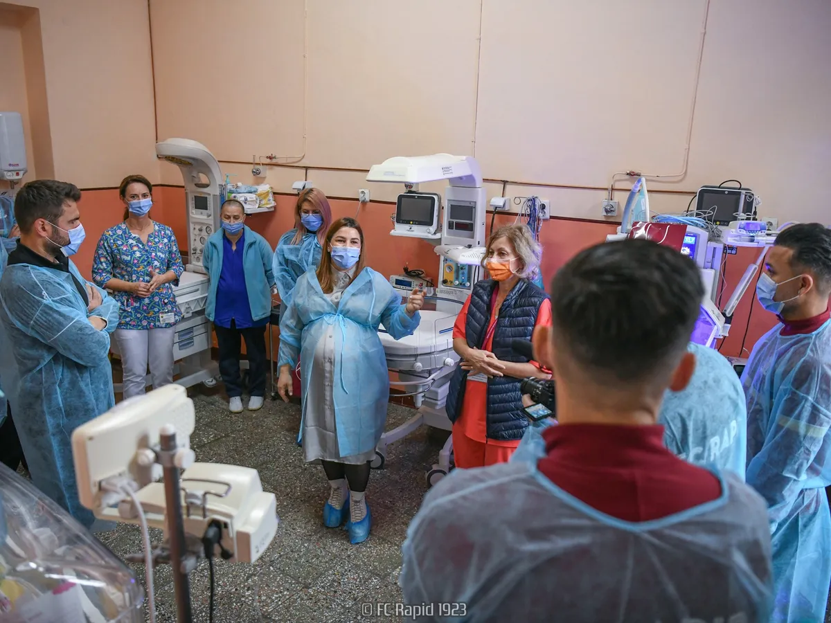 Jucătorii echipei Rapid, alături de Cetatea Voluntarilor Arad, au donat, cu ocazia vizitei de la Arad, două aparate de ultima generaţie, de imunologie şi hematologie, pentru bebeluşii născuţi prematur de la secţia de Terapie Intensivă.