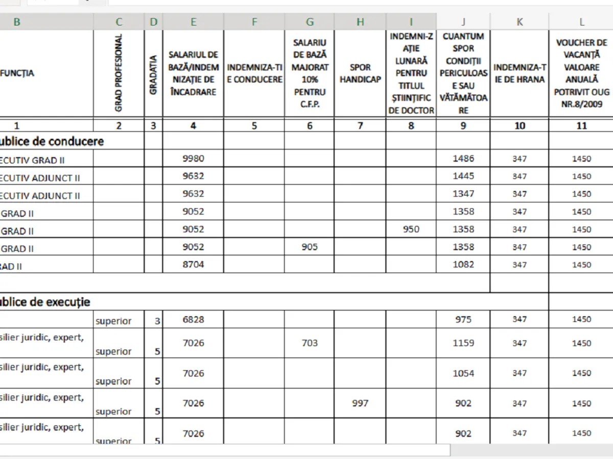 Un consilier / expert / inspector ia 7.000 de lei și un spor de 1.000 lei. La aceste sume se adaugă voucherul de vacanță de 1.400 lei și bonuri de hrană de 370 lei.