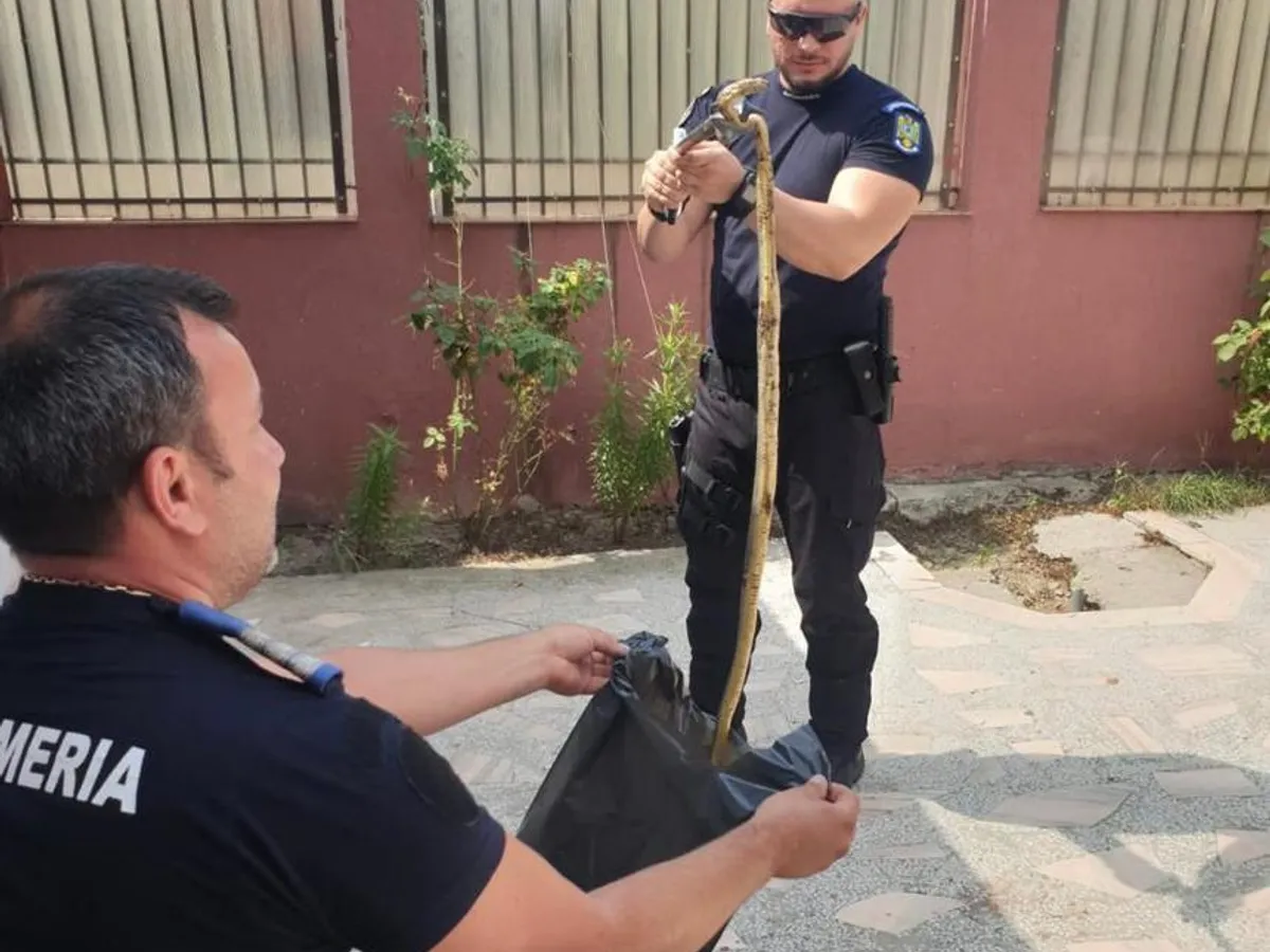 “Persoana sesiza faptul că un şarpe în lungime de peste un metru se află în canalizarea din curtea casei, motiv pentru care ne-a cerut ajutorul în această situaţie. În scurt timp, jandarmii au ajuns la locul indicat, iar şarpele a fost scos din canalizare şi eliberat în mediul natural”, a anunţat Jandarmeria Mehedinţi.
