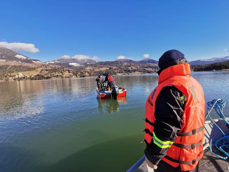 FOTO Scafandrii profesioniști continuă căutările după ce un tânăr a dispărut ieri în lacul Colibița
